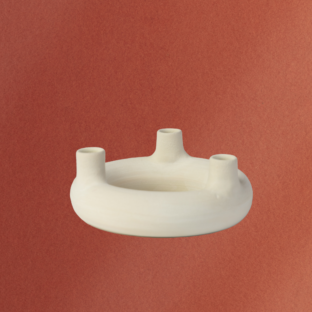Porta velas realizado en cerámica blanco crudo a poro abierto, sin esmaltar. Cada pieza está hecha a mano y es única, por lo que en ellas podrás encontrar imperfecciones y marcas. Las huellas del trabajo artesanal son perceptibles en cada pieza. Las medidas y color reflejadas son orientativas y pueden variar debido al proceso de elaboración.