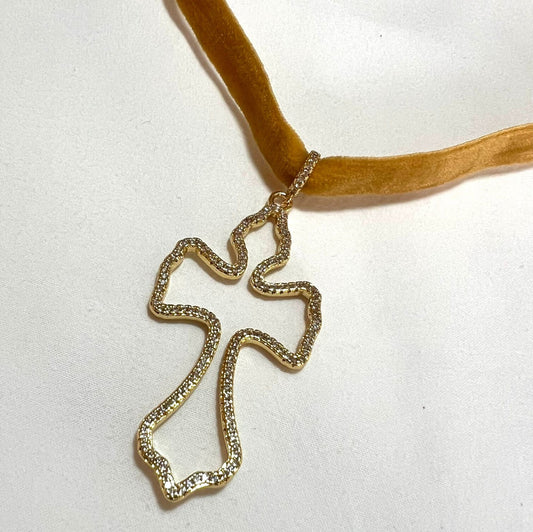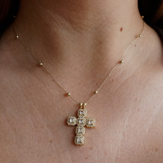 Cruz bizantina dorada y strass