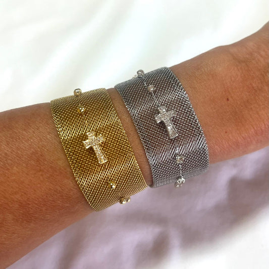 Pulsera malla oro con cruz negra