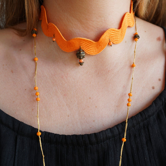 Collar largo con pieza de bronce