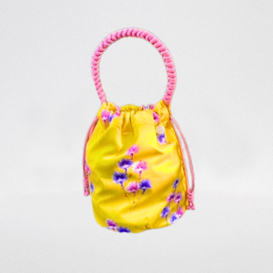 Bombonera de seda amarilla