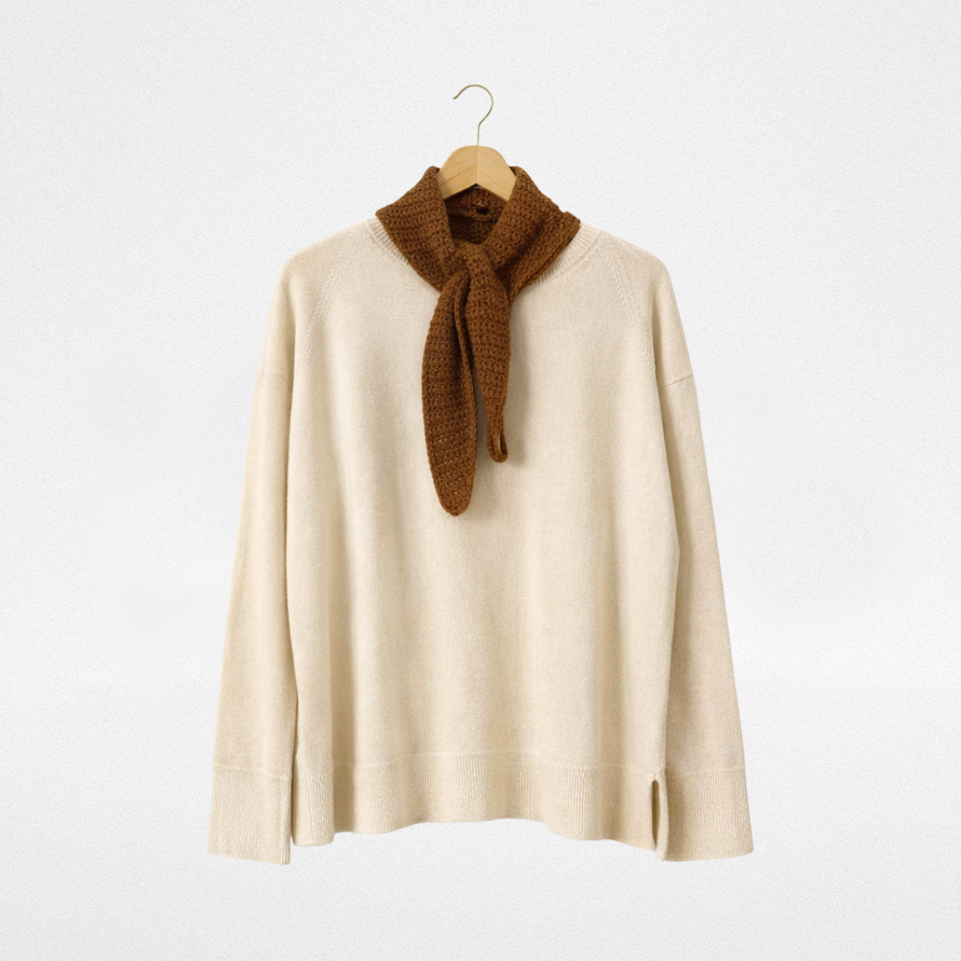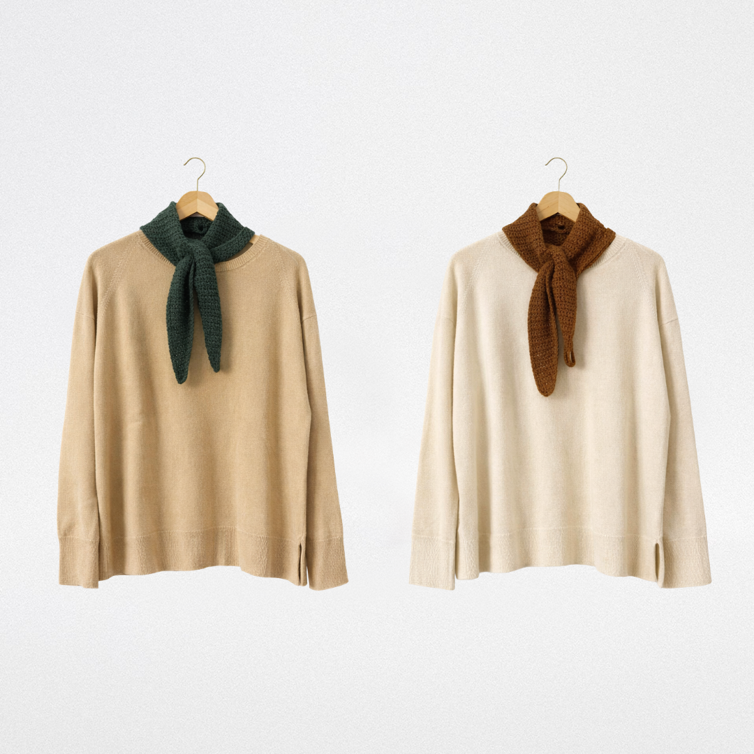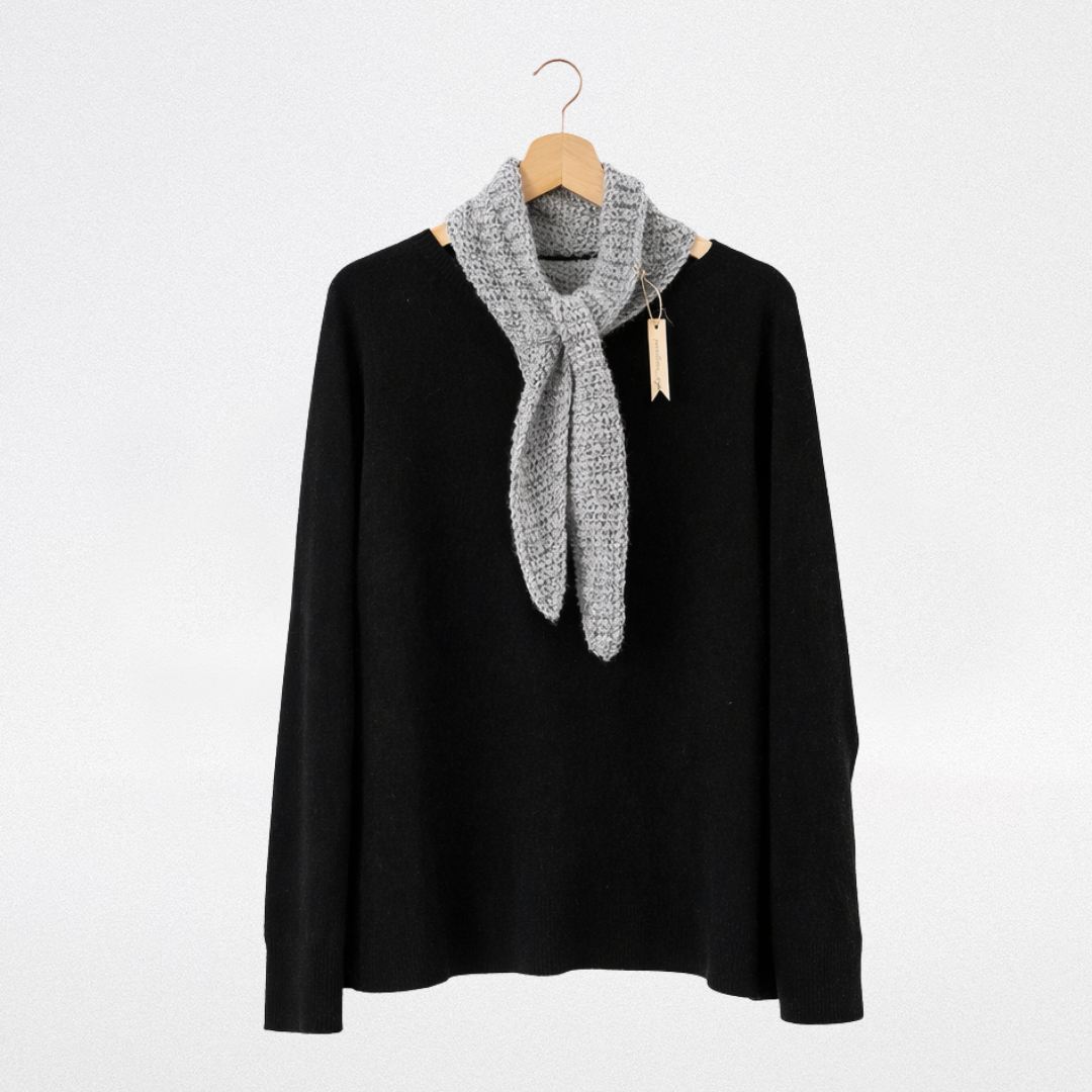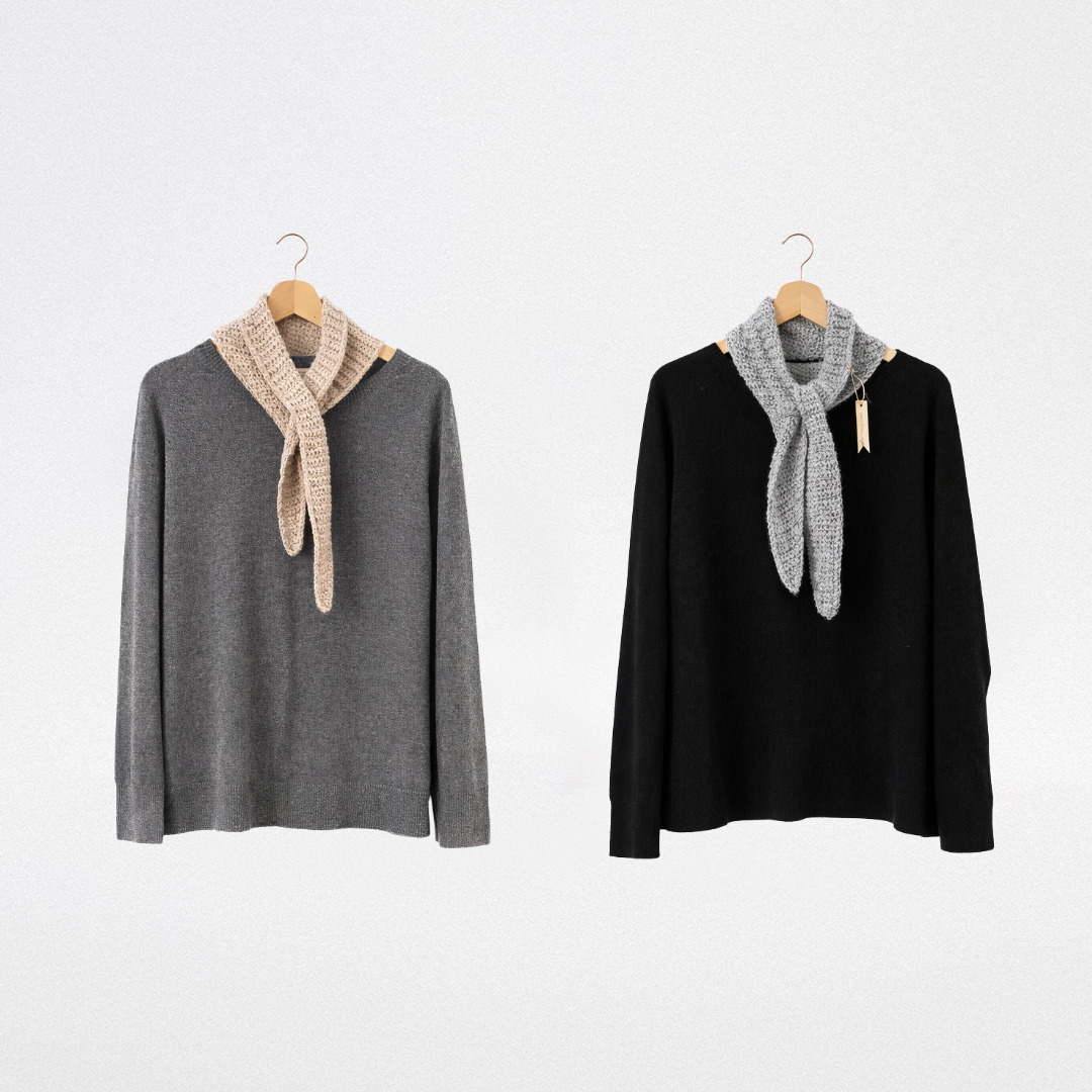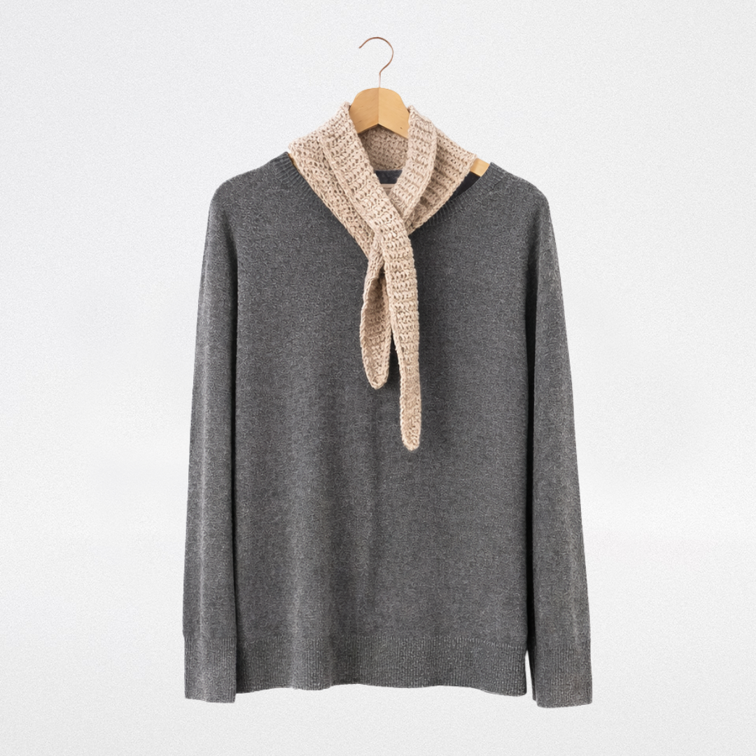 Soft and lightweight crochet triangle, entirely handmade in alpaca. A versatile accessory that can be worn as a small scarf, neck tie, or layered over sweaters and coats. Its warm texture and elongated shape make it the perfect piece to add an artisanal and elegant touch to any outfit.
