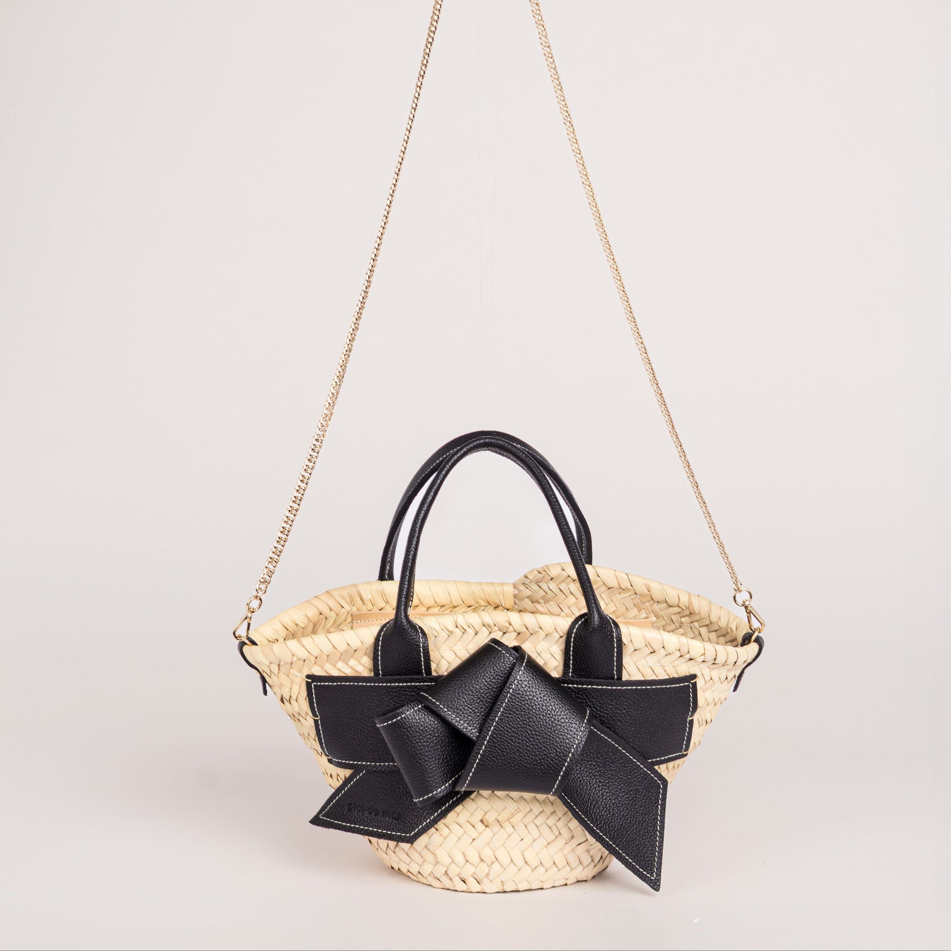 Handwoven in natural palm by skilled artisans and finished with premium cowhide leather, it preserves the essence of the original design in a smaller, more versatile format. Its structured shape and signature leather bow add personality to a piece made to last.
