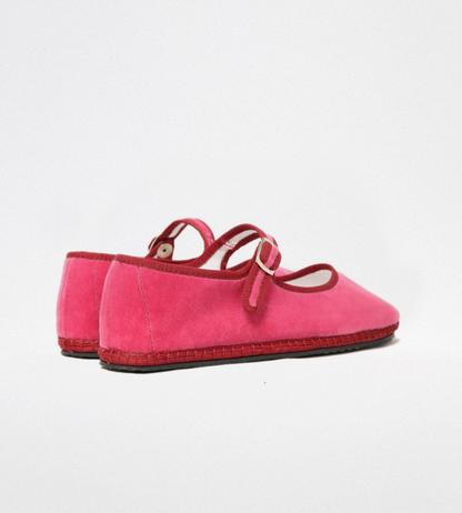 The velvet of this shoe is 100% cotton and, as is typical of products made from this material, may show marks caused by pressure. These marks do not affect its quality and are easily removed with light circular rubbing, steam or normal wear. As this shoe is handmade, it is exclusively stitched and glue-free, so it can be machine washed on a delicate cycle.
