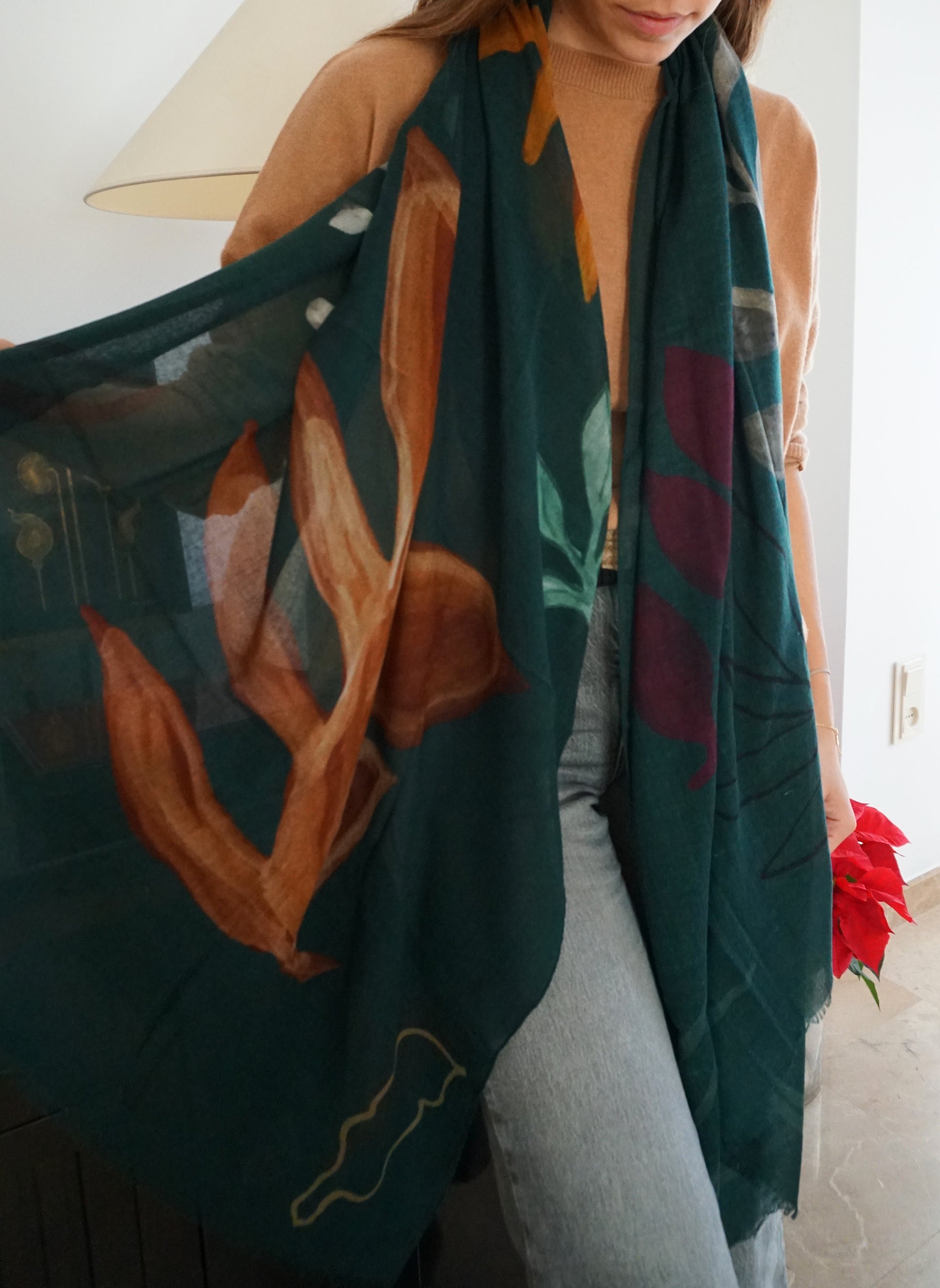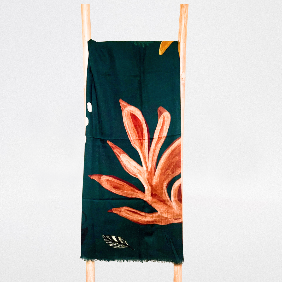 Fular de lana Verde con hojas