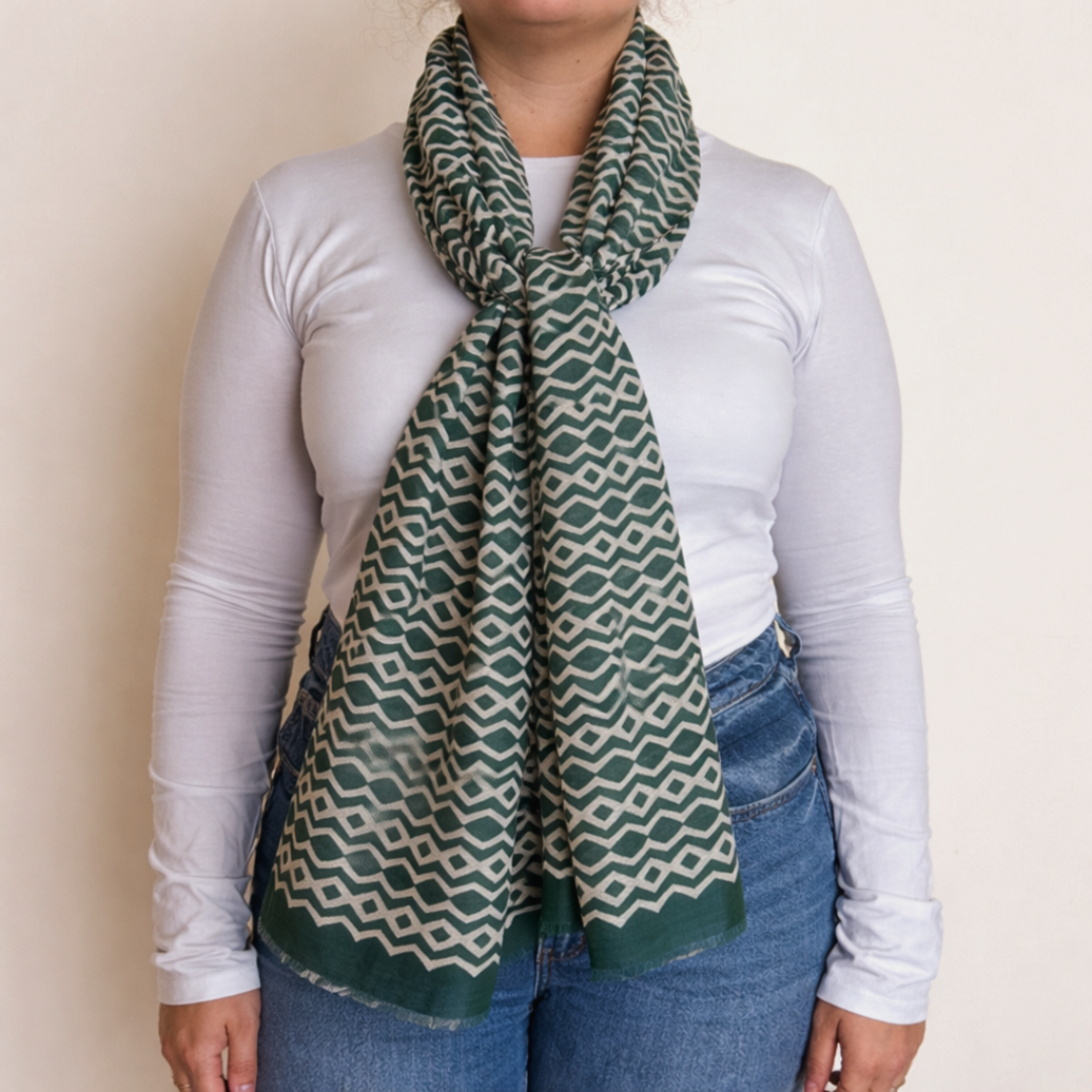 Scarf with geometric pattern.