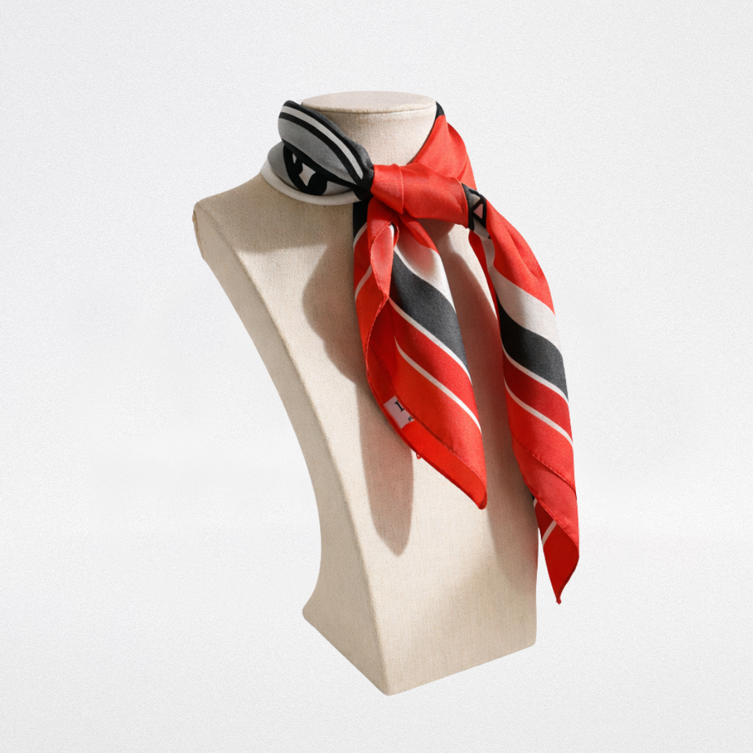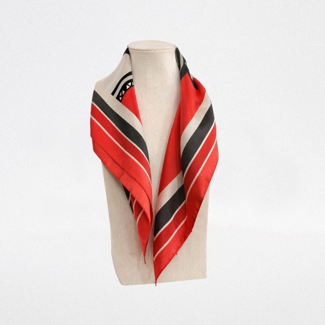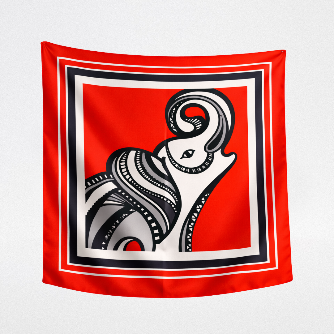 Mini pañuelo en twill de seda con dibujo de elefante. Es un complemento muy versátil que da un toque alegre a cualquier outfit. Se puede llevar en el cuello, en la coleta, en la muñeca o en el bolso.