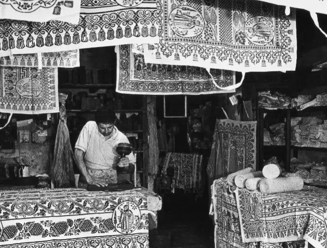 In 1826, in Gambettola, in the heart of Romagna, the Pascucci family opened a workshop and started their cloth printing business. The store was filled with hemp, linen, and vinegar odour. Since then, the suggestive and unique process of woodcut printing is revived daily in their workshop; the hand-carved pear wood matrices, impregnated with the colour paste, are placed on the fabrics and struck with a mallet. This is how the decorations of geometric, floral, or animal figures that are part of the rich popular iconographic heritage emerge.