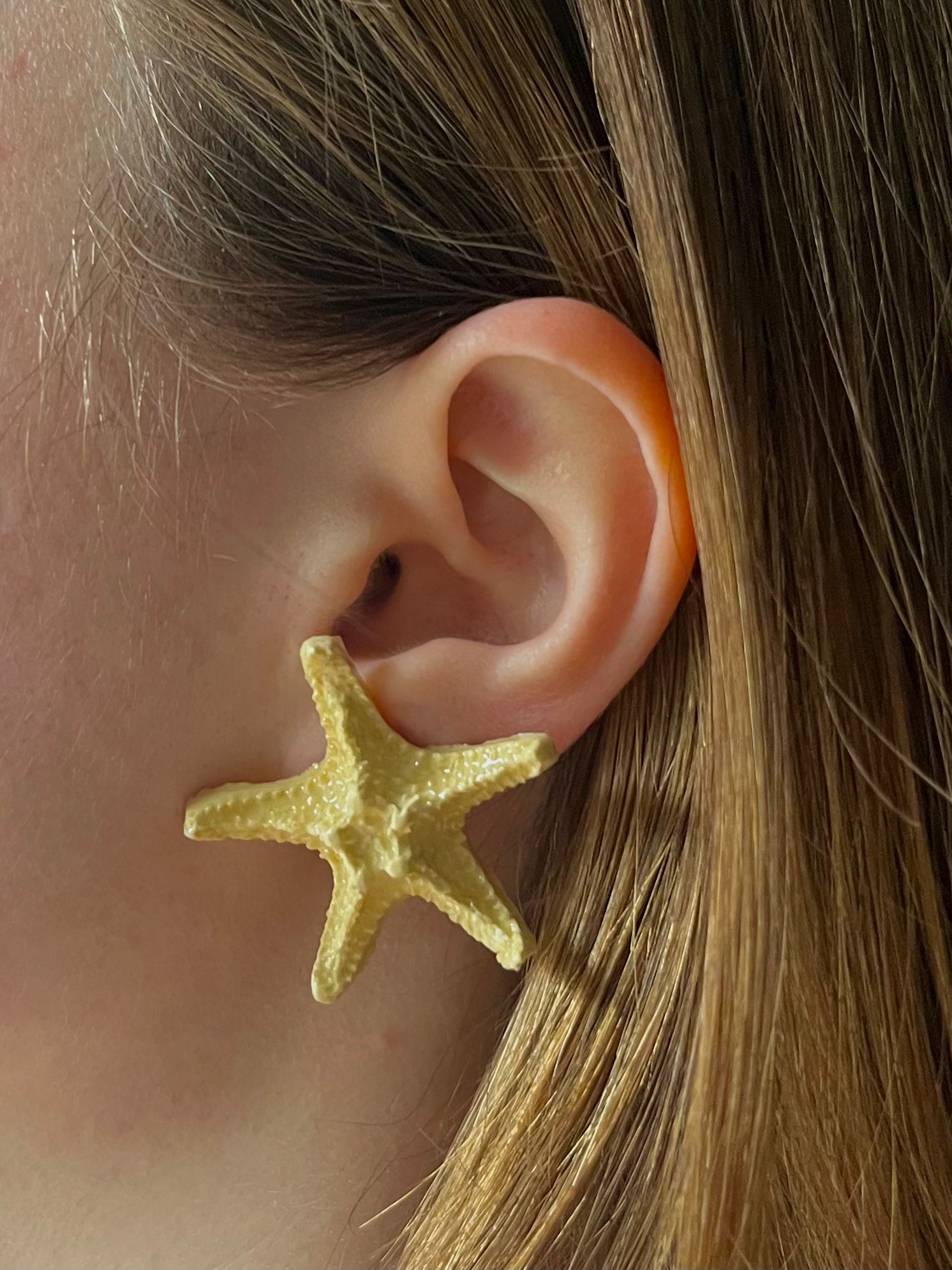 Clay starfish earrings. The part that comes into contact with the ear hole is made of stainless steel.