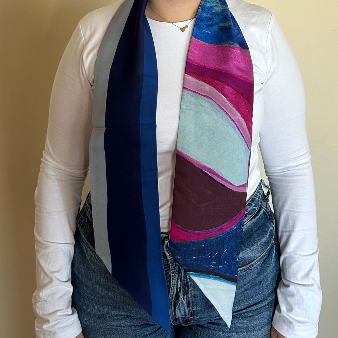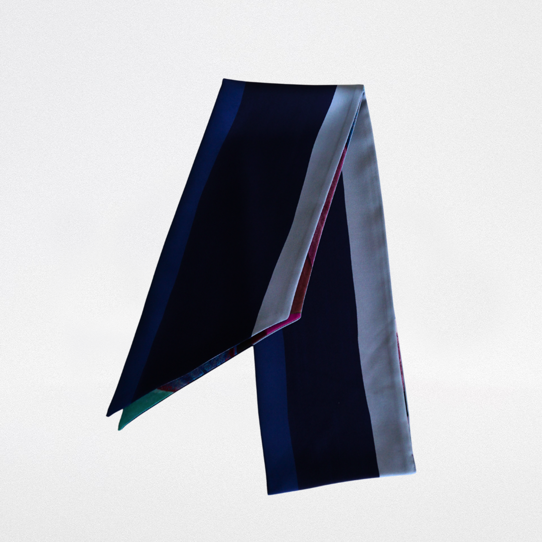 Oversized 100% silk twilly. Finished with a pointed tip in the classic twilly style.
