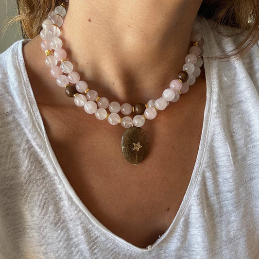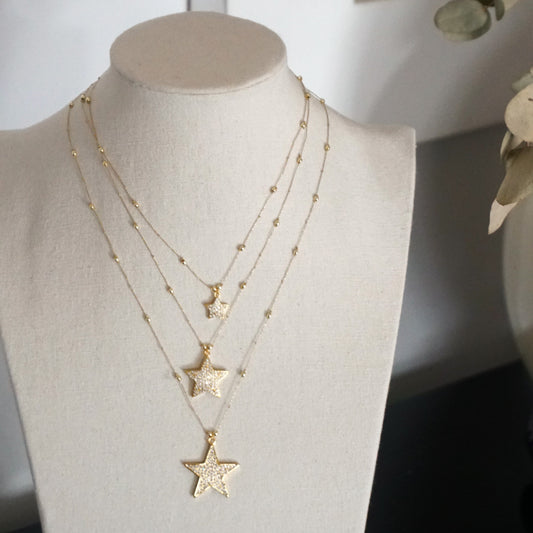 Collar dorado colgante Estrella de hilo fino con bolitas