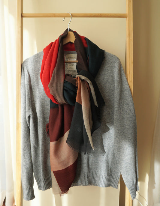Fular de lana Rayas Multicolor Rosa salmón y marrones