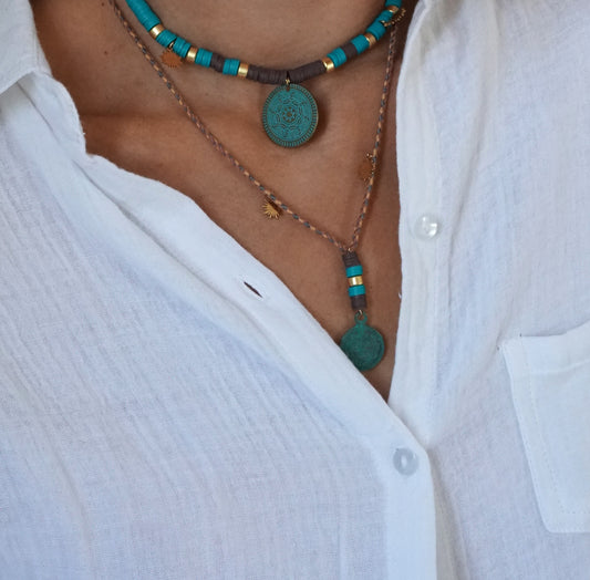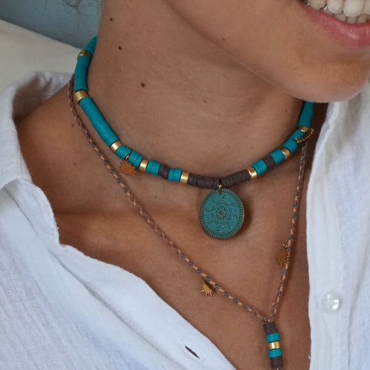 Choker con gommini turchese e moneta