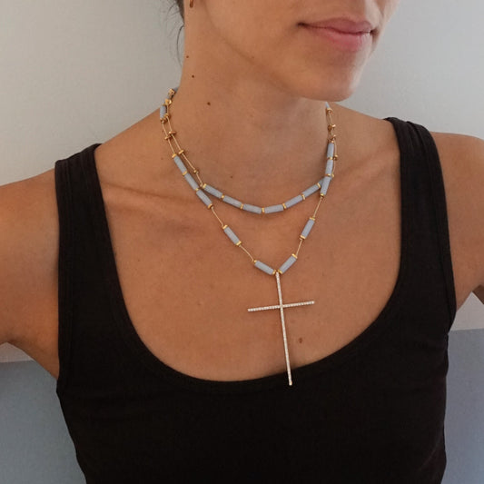 Collana doppia di acquamarina con croce