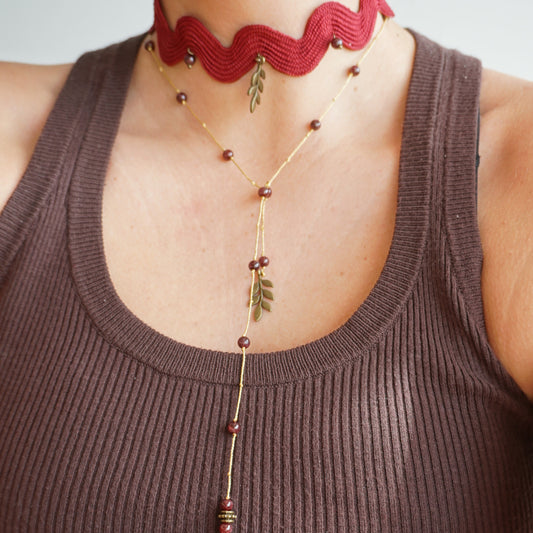 Choker passamaneria bordeaux e ramo di bronzo