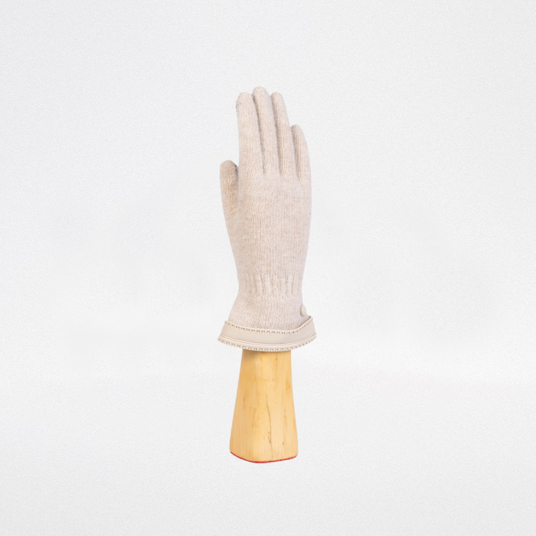 Guanto in lana e cachemire, tinta unita con bordo e nappine in pelle ovina  dello stesso colore. Realizzato artigianalmente in Spagna.
