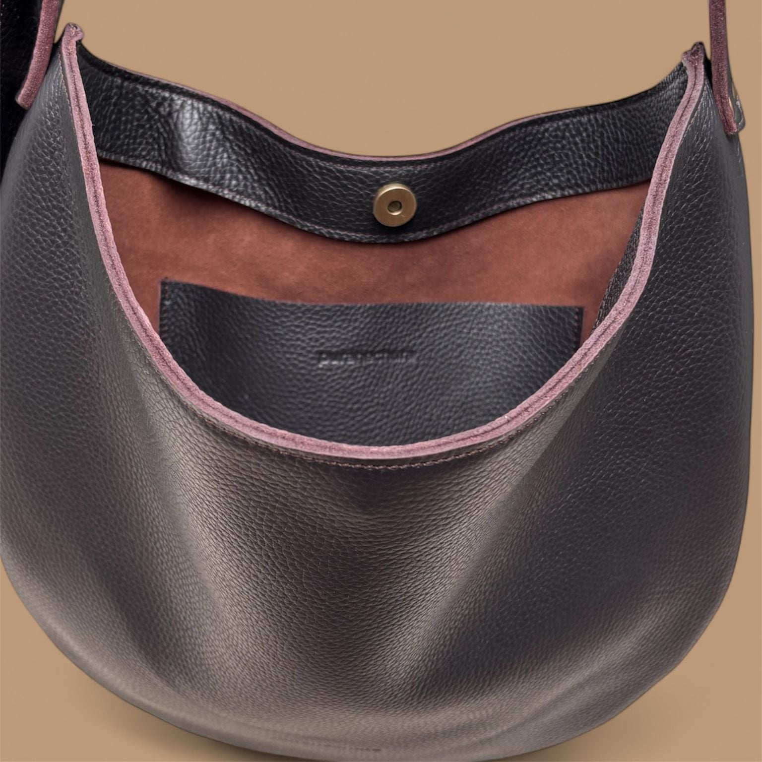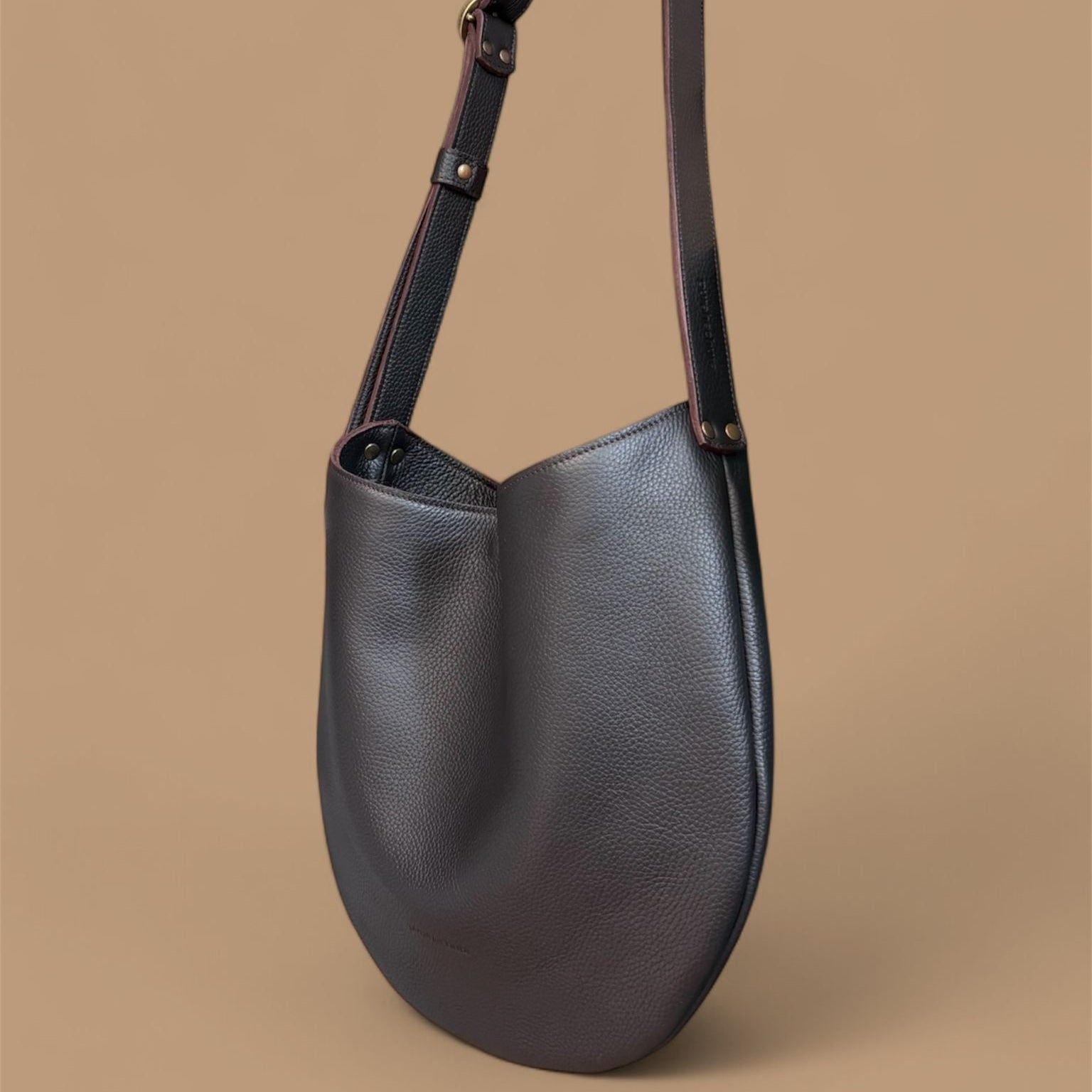 El bolso hobo MATT en tamaño L está elaborado en piel de vacuno color chocolate.